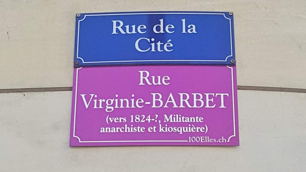 Aus Genf wurde mir gerade folgendes Foto zugeschickt: Dort gibt es jetzt eine Rue Virginie Barbet! – Die Benennung erfolgte im Rahmen der Aktion 100elles.ch, bei der 100 Straßen in Genf nach Frauen benannt wurden!